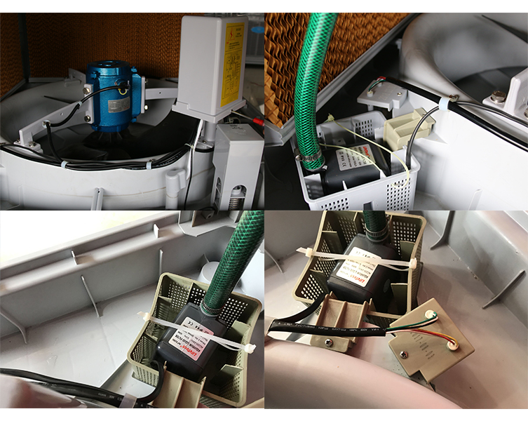 解決方法:打開空調(diào)主機,看濕簾是不是干的,如果是干的,先檢查空調(diào)主機底盤的水盤中有沒有水,如果有水,再檢查水泵的接線端子是否有脫落現(xiàn)象,如正常連接,再檢查空調(diào)主板有無損壞,如主板無損壞,可初步確定為水泵損壞,我們可以用萬用表來檢測水泵的電阻值。水泵的正常電阻值為: Ω,如果測量超出這個范圍,我們可以確認為水泵損壞。